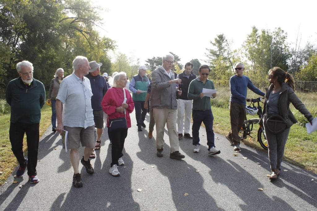 While only a portion of 133 Boston Post Road — the northwestern end of the parcel — is currently within a half mile of the Kendal Green station, Weston received state approval to develop its plan based on the potential new location of the station, near the Mass Central Rail Trail bridge over the MBTA tracks. That new location’s half-mile radius would encompass nearly the entirety of the 74-acre parcel.