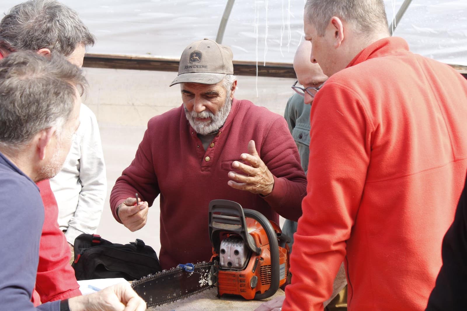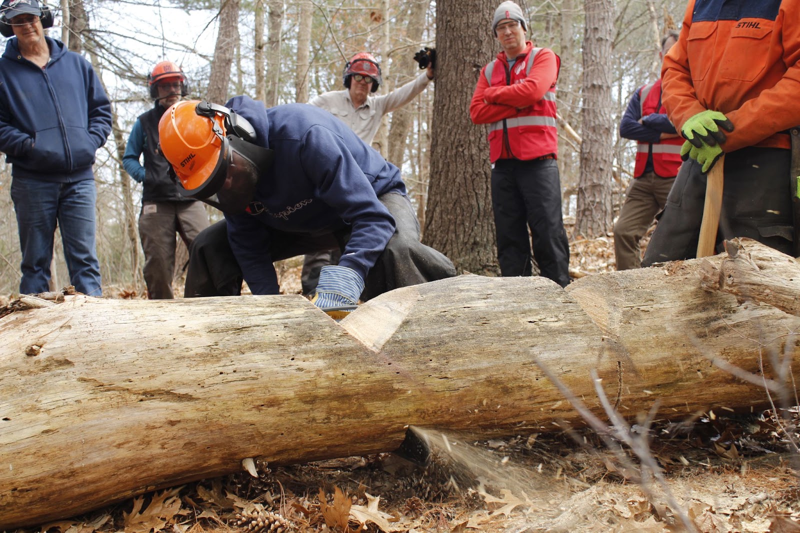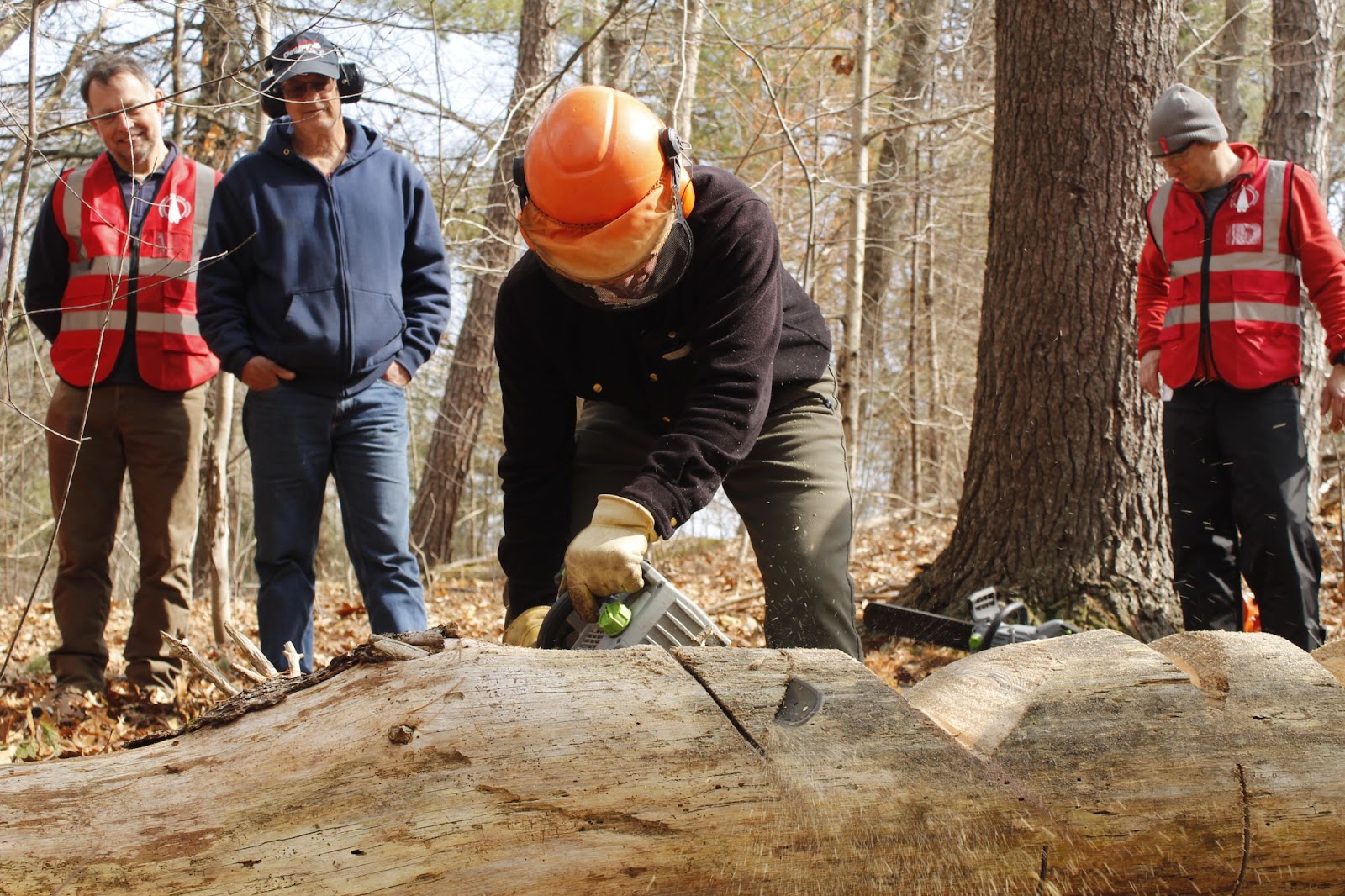 Last week, 10 members of the group took a chainsaw safety course on the Sears Land. Bill Girard instructed the volunteers on what safety equipment to wear, how to take care of a chainsaw and the best way to approach different types of fallen trees.