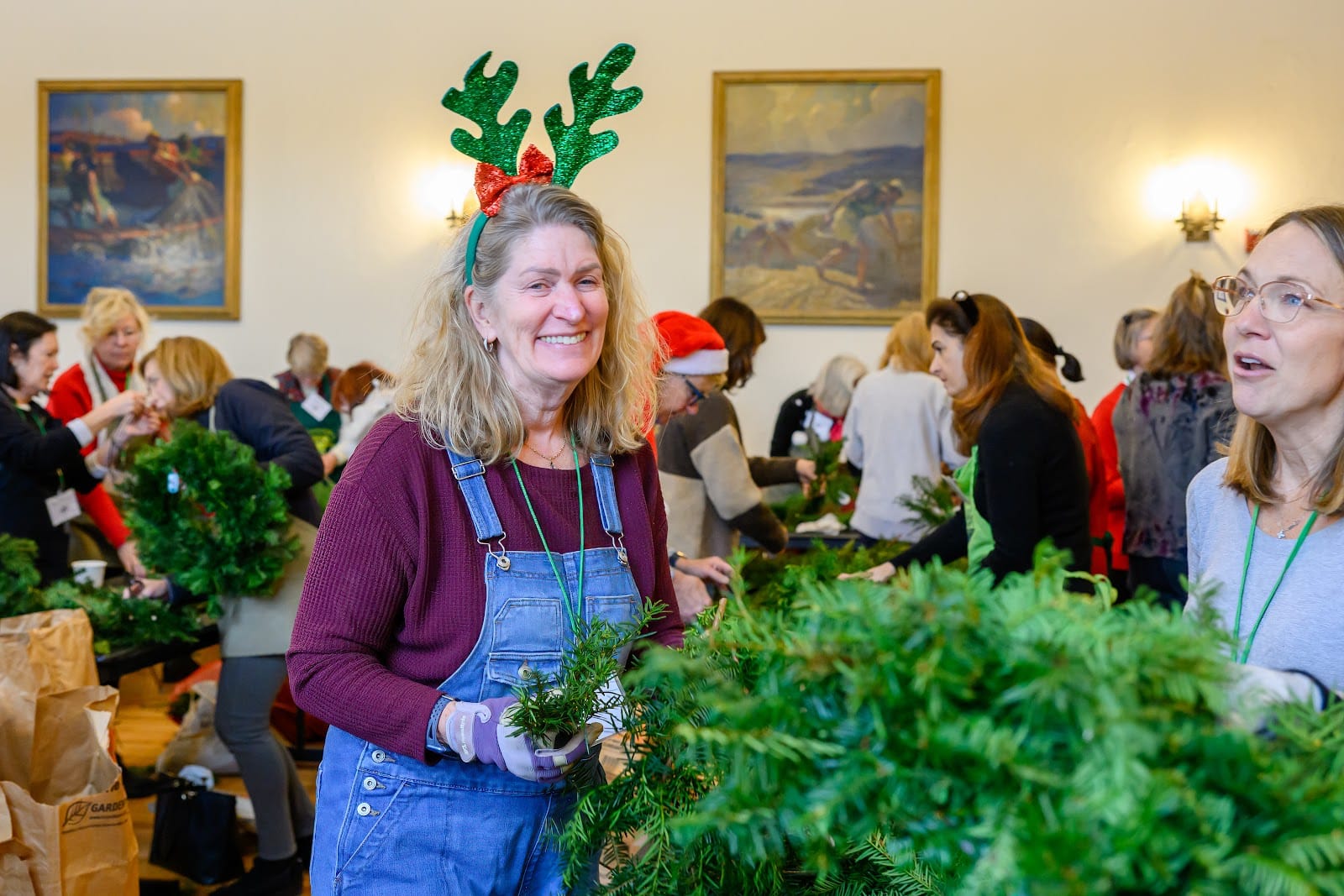 Gina Hajjar makes a wreath at the Weston Garden Club Greens Day event at the First Parish Church.