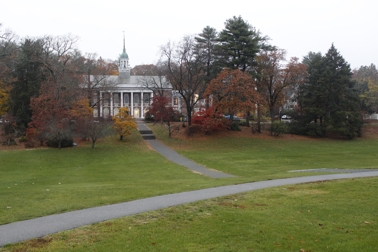 In the 1910s, the town hired Arthur Shurcliff, a landscape architect best known for the restoration of Colonial Williamsburg and his work on the Boston Metropolitan Park System, to design the green space. His design included a path across the space and the rectangle of trees in front of Town Hall. Today, the sloping green is lined by trees that provide vibrant oranges and yellows in the fall, and whites and pinks in the spring.