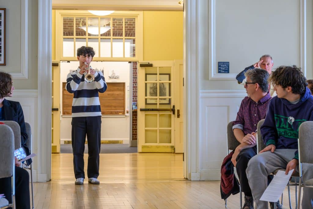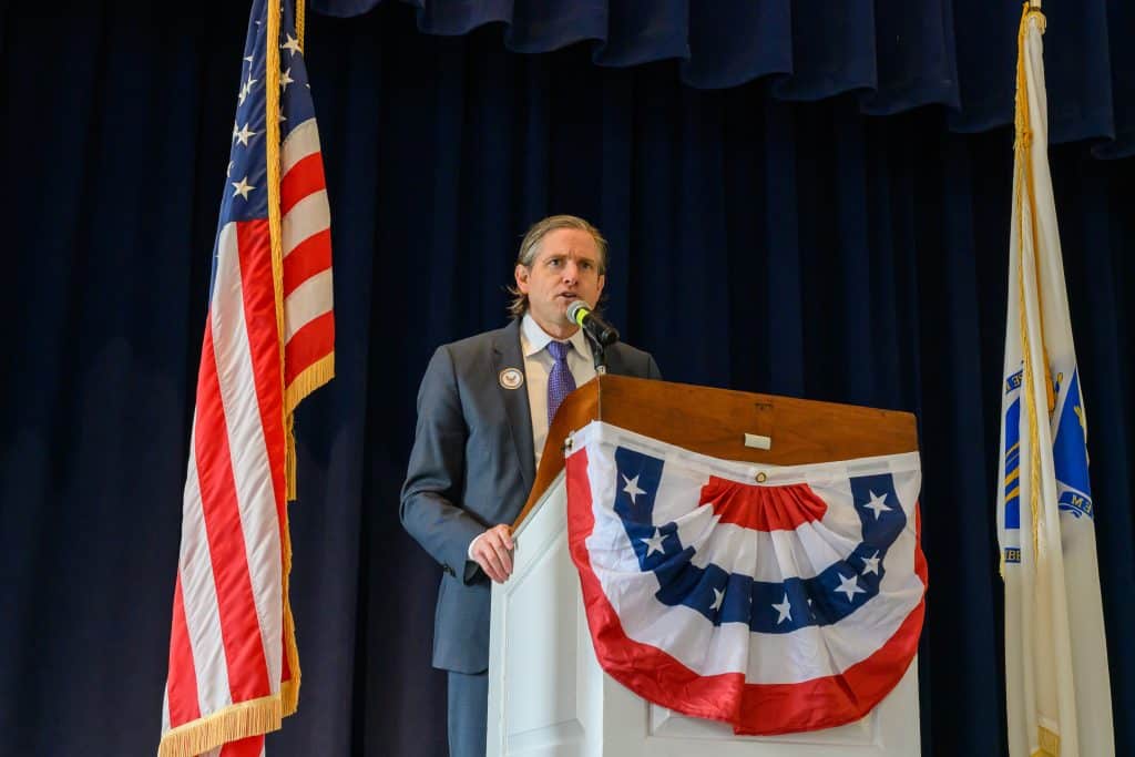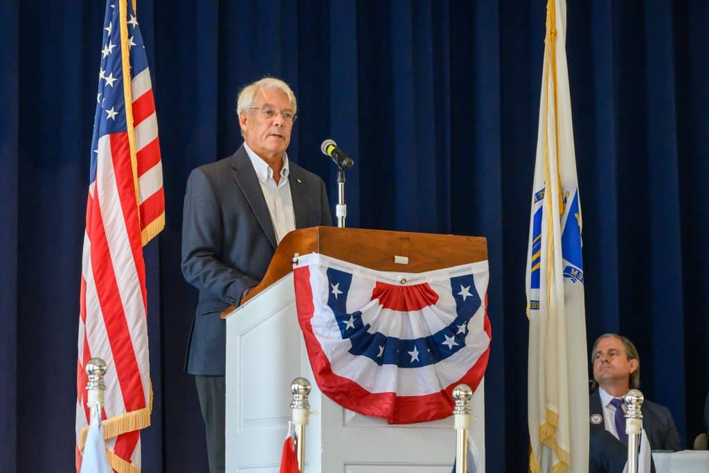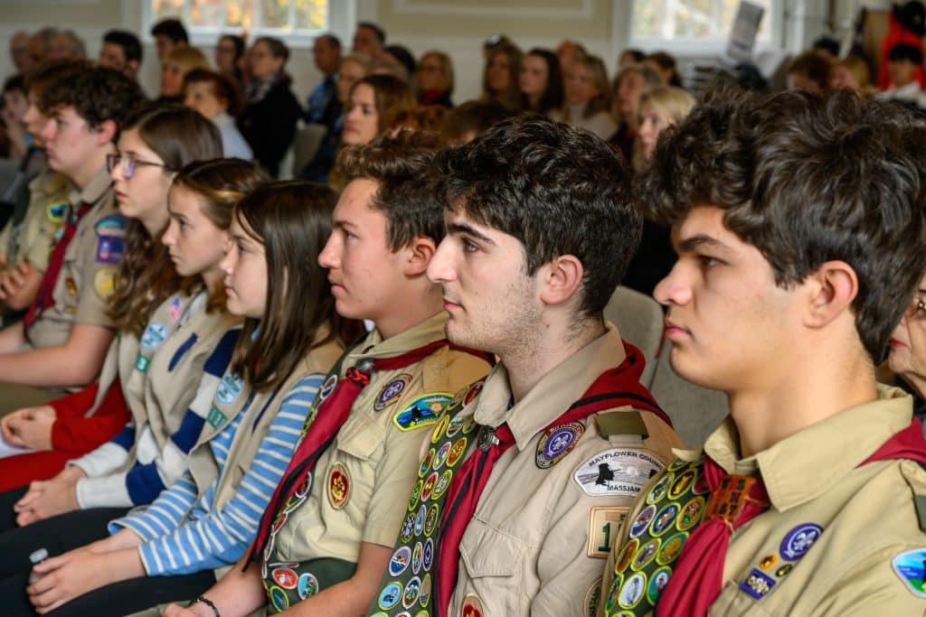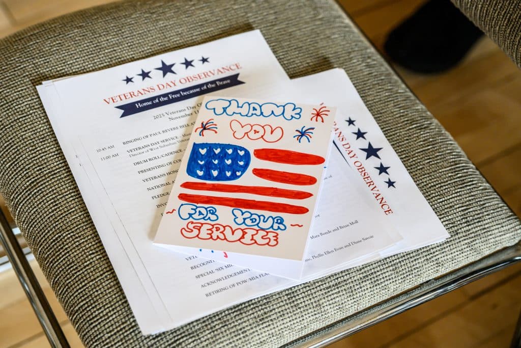 On Tuesday, Nov. 11, Weston held its annual Veterans Day commemoration, honoring those residents who served in uniform to uphold the ideals of the nation. Ceremonies began with the tolling of the Paul Revere bell at First Parish Church, followed by a program at the Sears Auditorium in Town Hall. Veterans Service Officer Dan O’ Neill was master of ceremonies and Rip Hastings, town moderator and veteran of the U.S. Coast Guard, delivered the keynote speech.