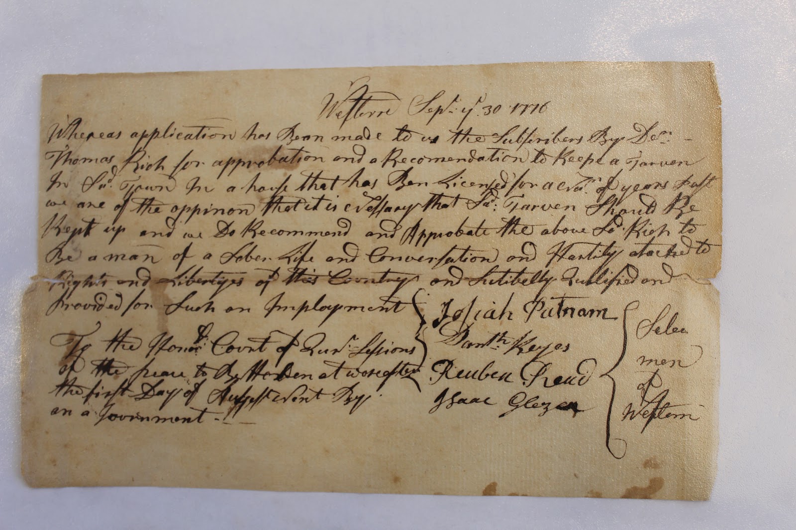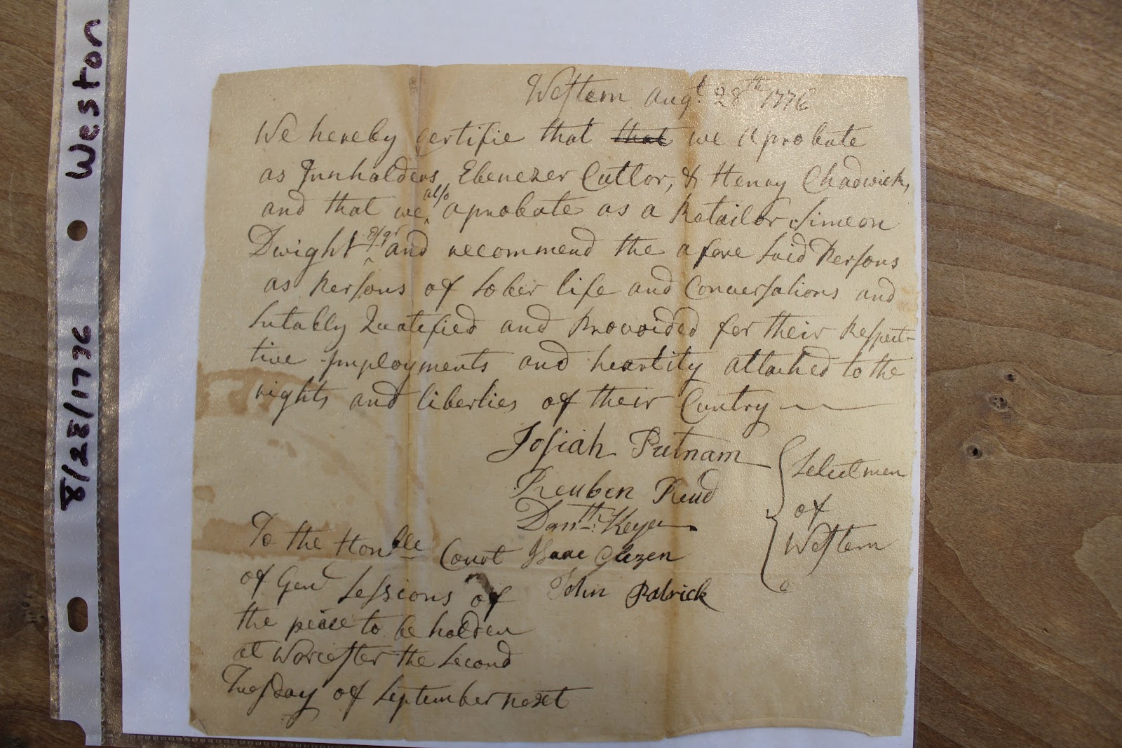 First, the documents were from the then-newly formed Worcester County court, although it is possible the court may have taken responsibility for covering Weston, a Middlesex County community, during the hectic period of 1776.